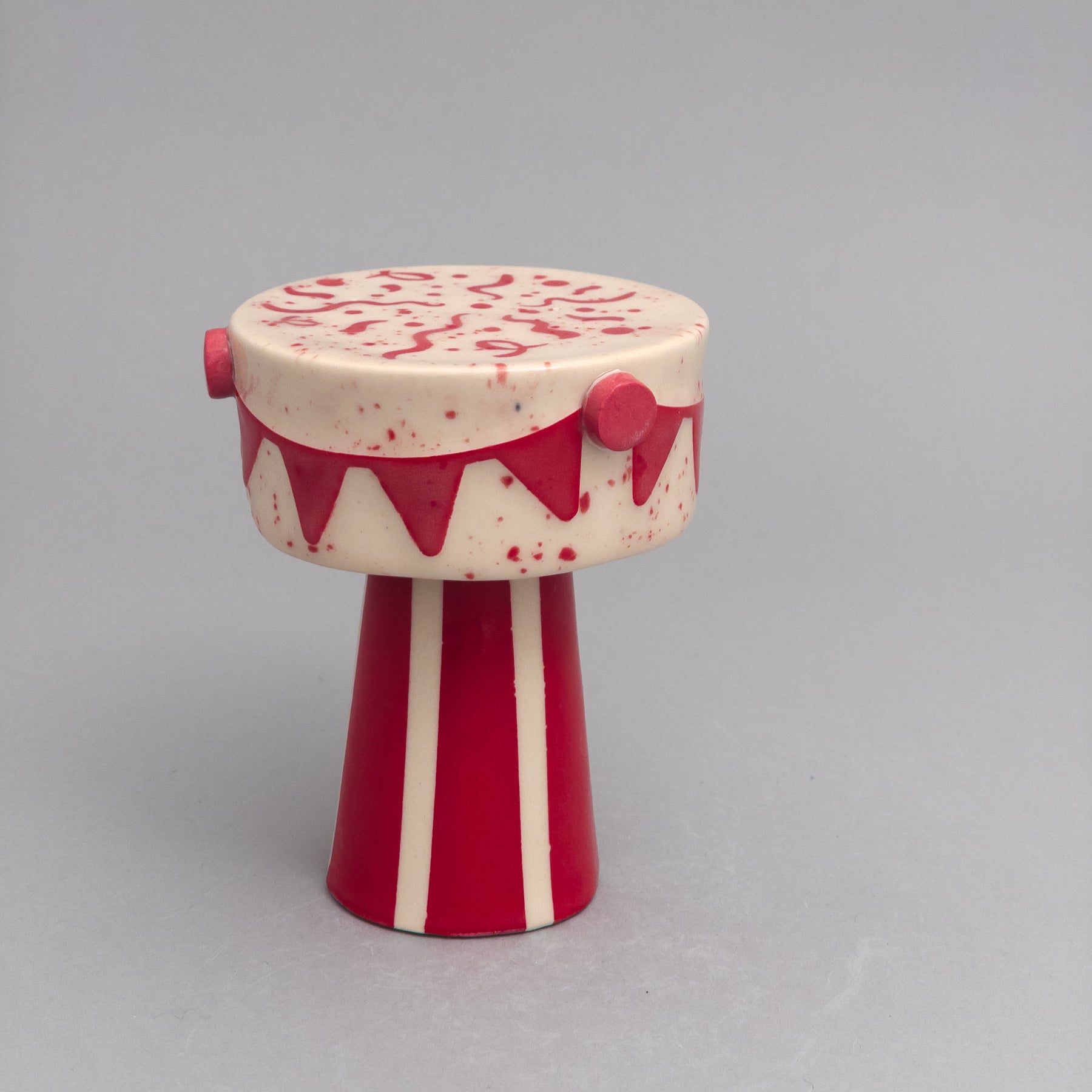 display surface. The festive red festoons are water-etched into the white porcelain