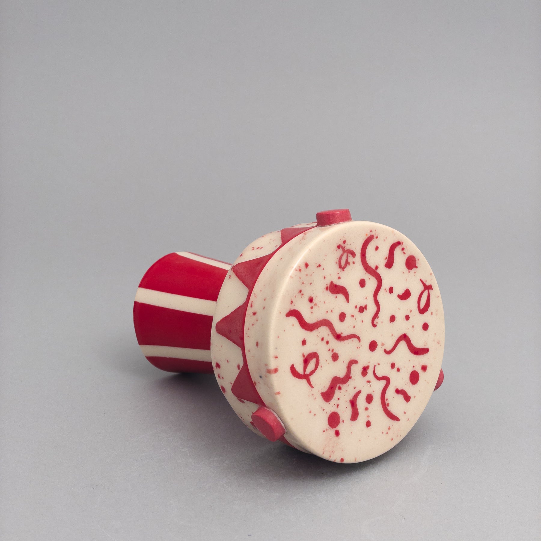 clay creating subtle texture you can feel, then colored with red underglaze.