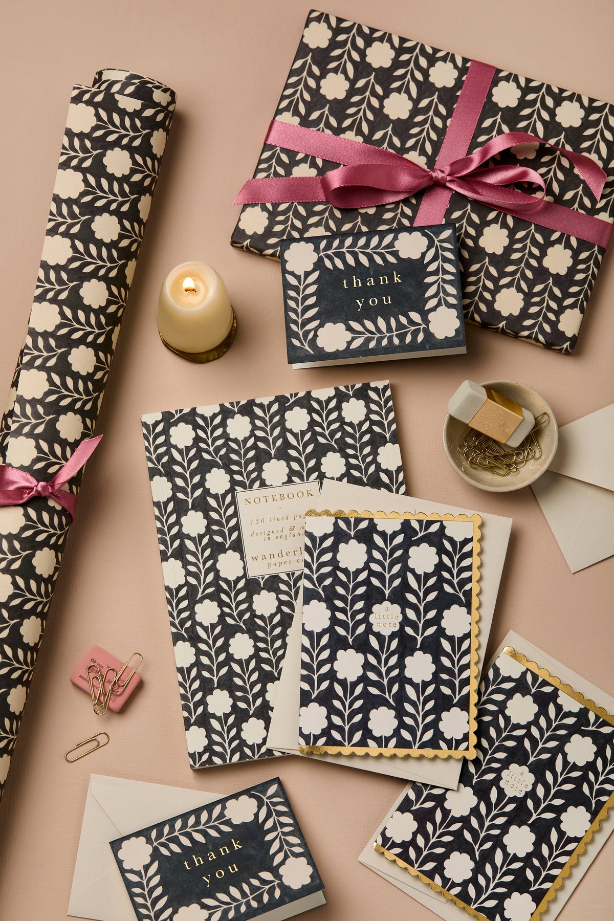 Our patterned papers are printed in the U.K. using the finest quality paper and measure 500mm x 700mm. This beautiful paper features an inky floral print and has been designed to complement our ink flora cards and notebook. SKU WAN 14