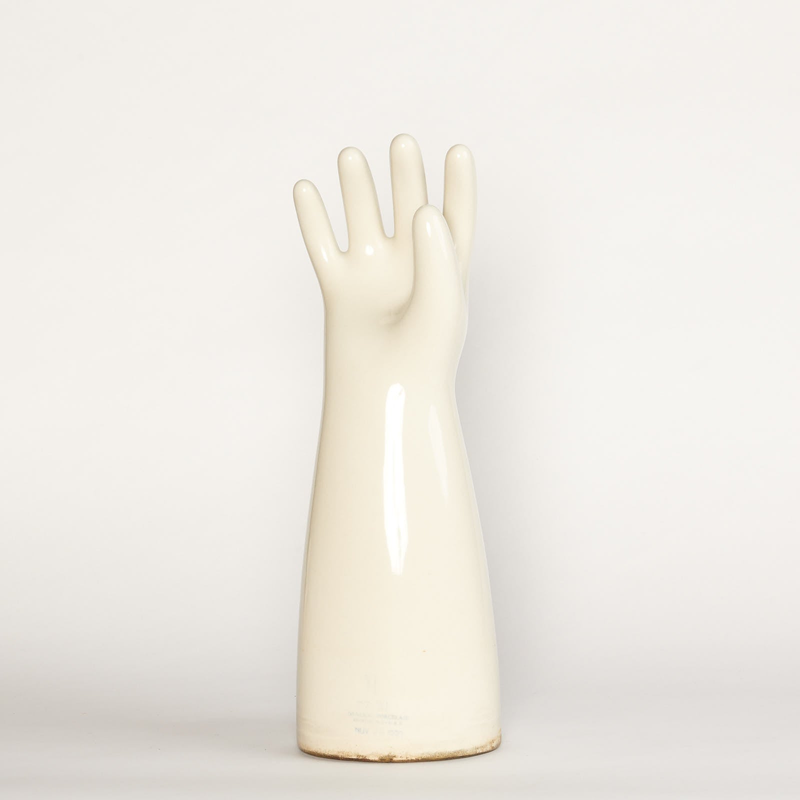 Large Glazed Hand Rubber Glove Mold. General Porcelain. -- Dimensions:  H: 19 inches: W: 6 inches: D: 5 inches ---
