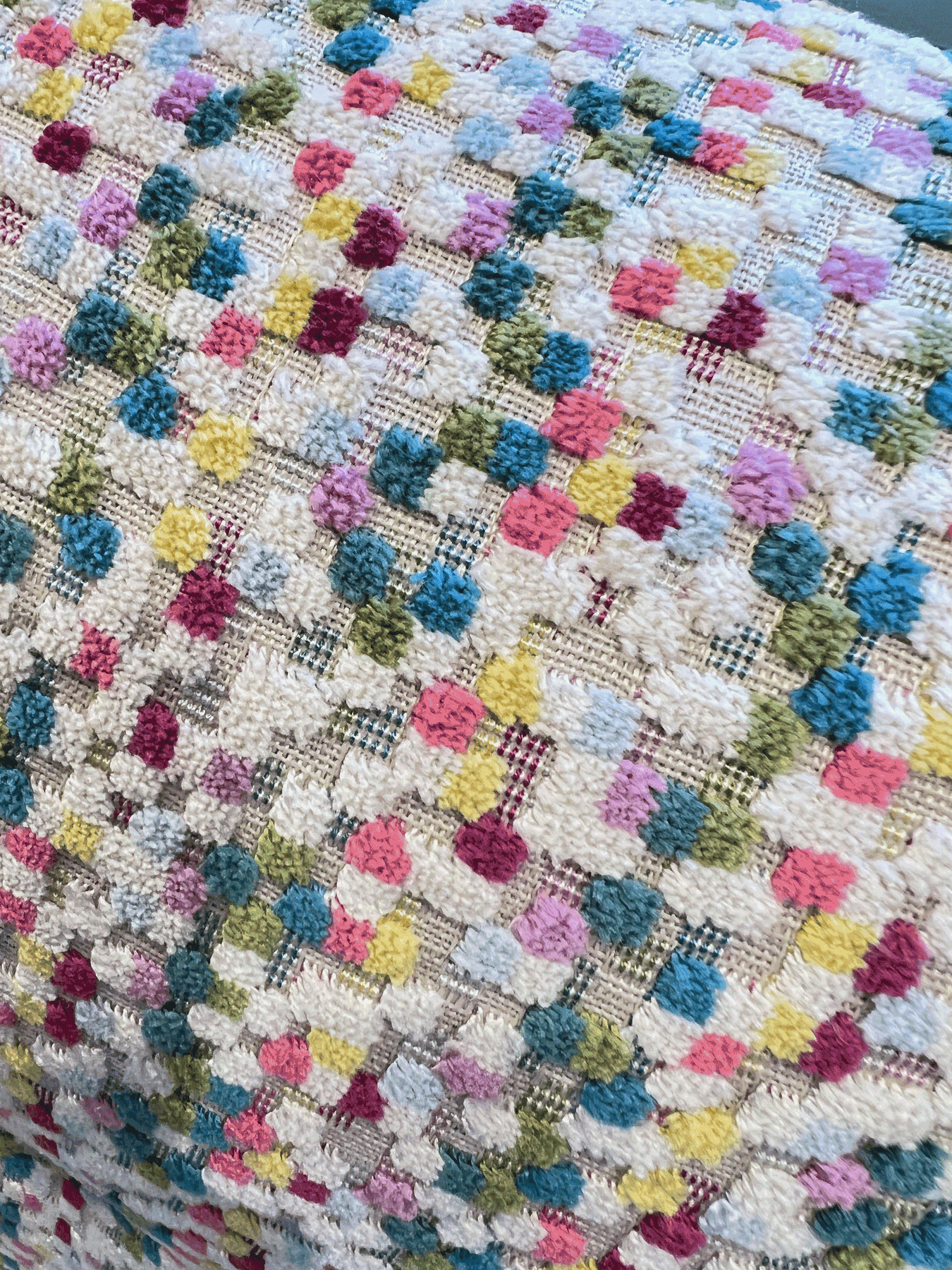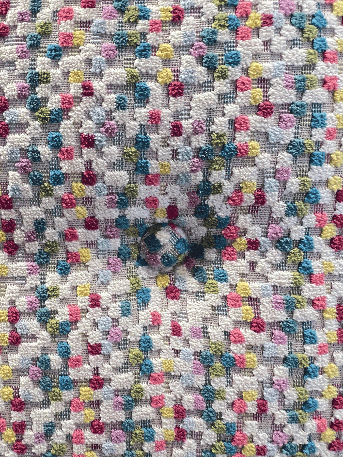 Mid century club chair  reupholsered 2021 by hand in a Brooklyn, NY  workshop  with Kravet Confetti.  . Dimensions - 29" x 32" x 29"