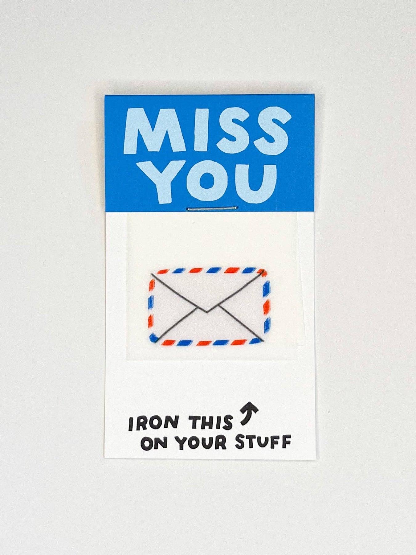 Just a l'il something for your someone to say I miss you. This is a business card size greeting with one small iron-on included. You give the sentiment AND a decorative reminder of the occasion. A l'il spot for "To" and "From" is on the back along with instructions. Iron this snail mail letter onto your clothes, hats, bags, or journals.