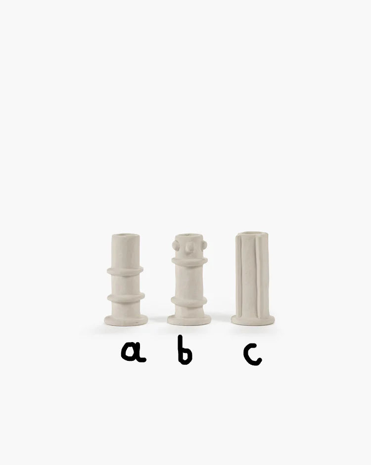The 03 Molly candle holders are a work of art with a white stone finish and a matte exterior. The inside is skillfully glazed. Their graphic appearance draws all eyes to them in every room.